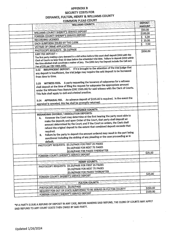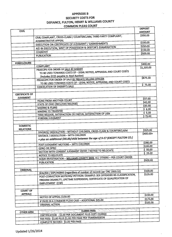 Clerk of Courts Fees
